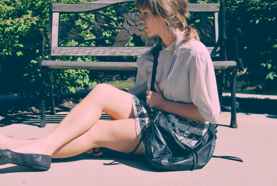 Clothes in photos: Earrings/ Forever 21 :: Blouse/ Thrifted :: Skirt & Bag/ UO :: Shoes/ Target